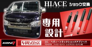 200系ハイエースにKONI製ショックアブソーバーを取付 【SA十日市場 取付事例】 またまたトヨタ 200系HIACE 今回は・・・・・・ 足回りの相談です。 「ロールが大きく安定しない・・荷物を載せてるので一度揺れると収まるのに時間が...